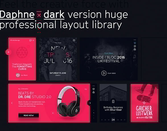 Feel the creative force with + Daphne x Dark version huge professional layout library.